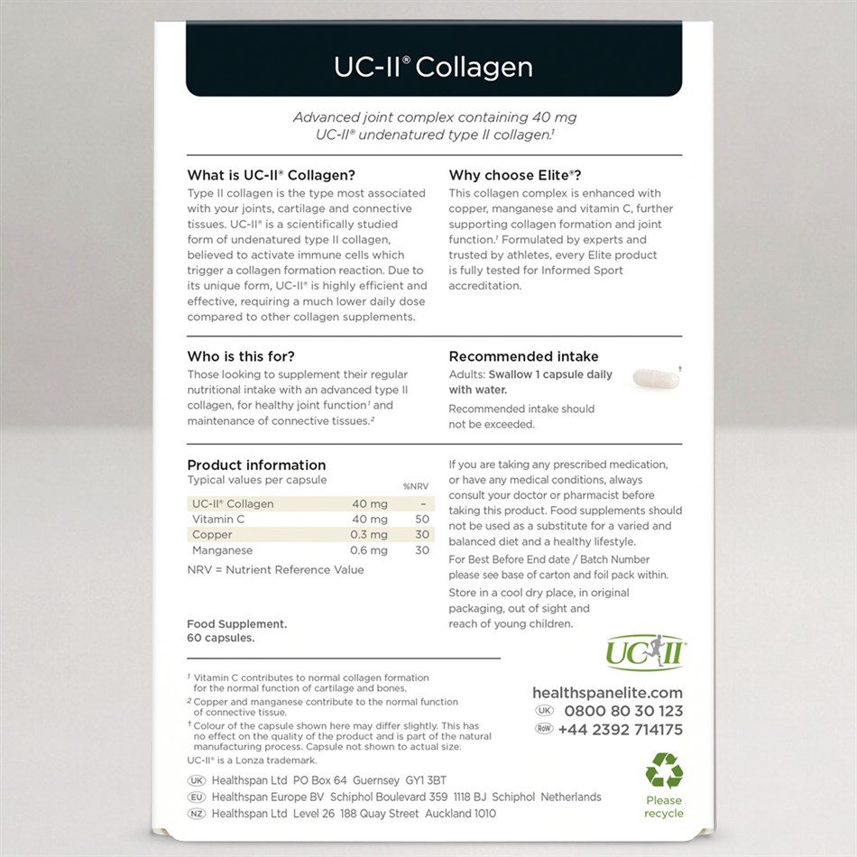 Our products are formulated by experts and trusted by athletes, and every Elite product is fully tested for Informed Sport accreditation. In this collagen complex, we added copper and manganese which contributes to the normal function of connective tissue, and vitamin C which is proven to contribute to normal collagen formation.