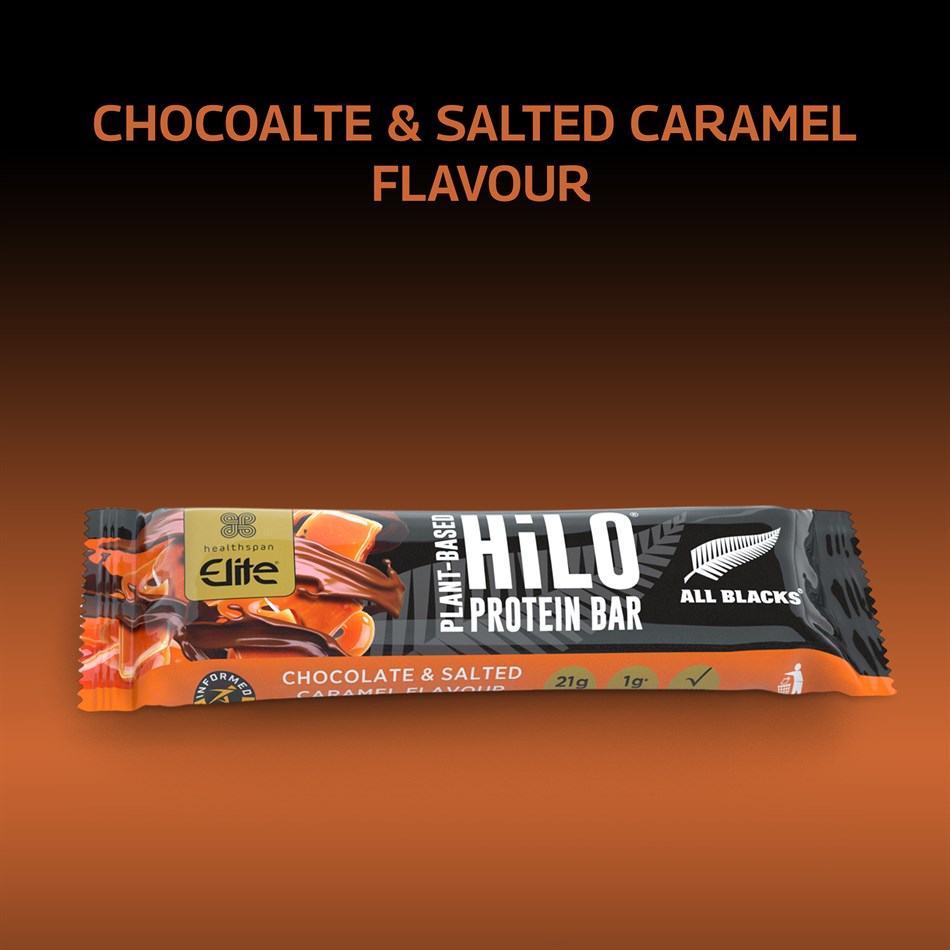 All Blacks Plant−Based HiLo® Protein Bar − Chocolate and Salted Caramel Flavour