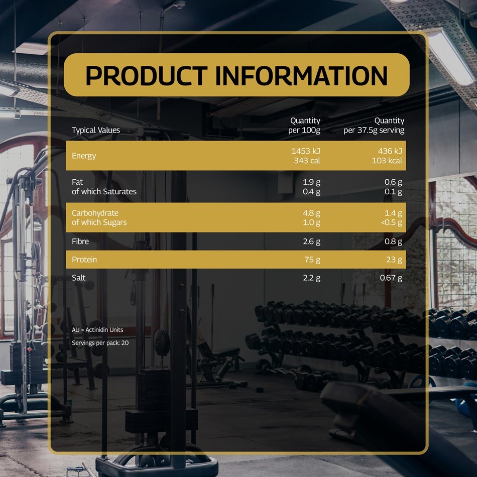 | AU = Actinidin Units Servings per pack: 20 | ||