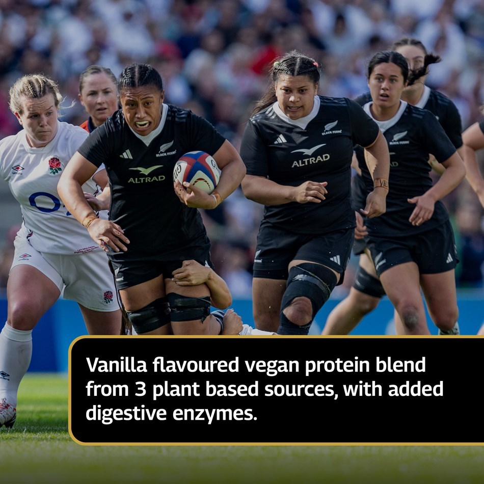 As we age, muscle maintenance becomes increasingly important to support strength*, mobility, and overall well-being. Whether you're following a plant-based diet or simply looking for a high-quality, dairy-free protein, All Blacks Plant Protein Vegan Blend delivers 23g of protein from a premium mix of fava bean, rice and chickpea proteins, plus 4.1g of naturally occurring BCAAs to help prevent muscle loss and aid recovery. We’ve also added a digestive enzyme blend including amylase, protease, and lipase, which break down carbohydrates, proteins, and fats respectively. This plant-based protein powder is easy to mix and tastes great, with a luxurious vanilla flavour. It’s also low in sugar.